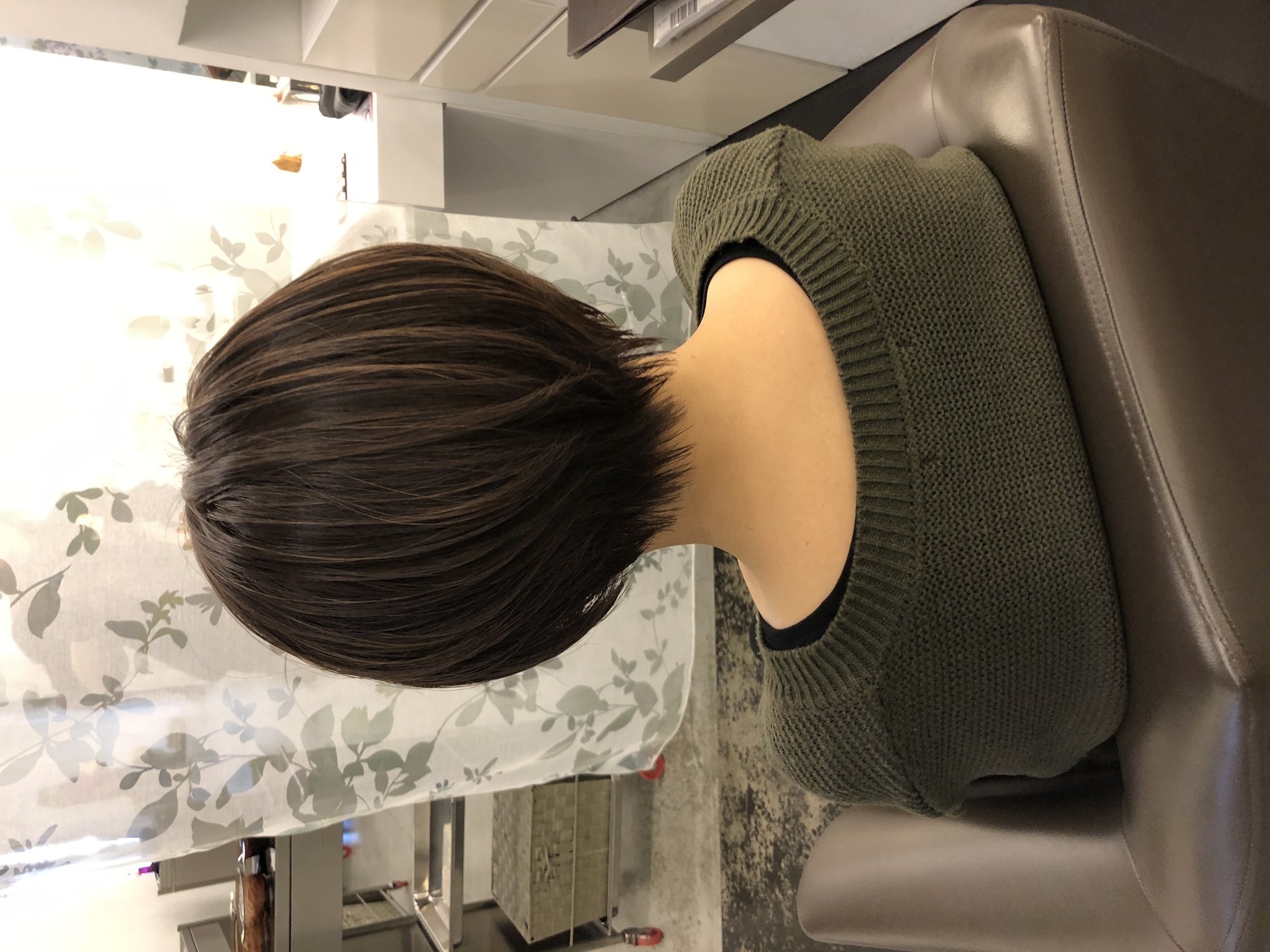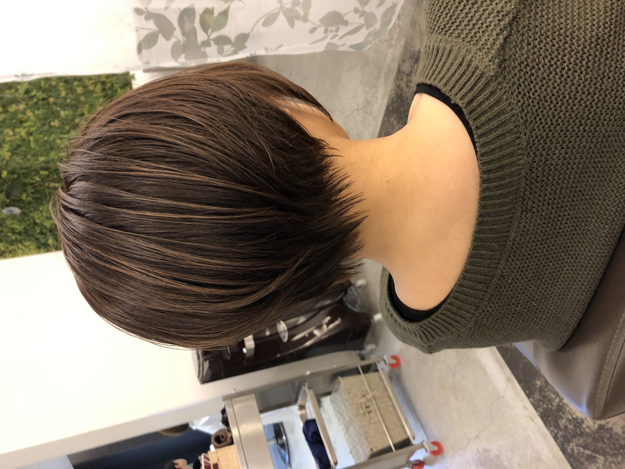 硬い髪質なら軽くアイロンを通すだけで簡単にスタイリングできます。 - カット、ジュエルカラー