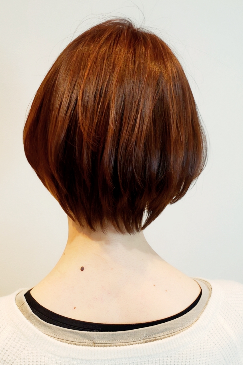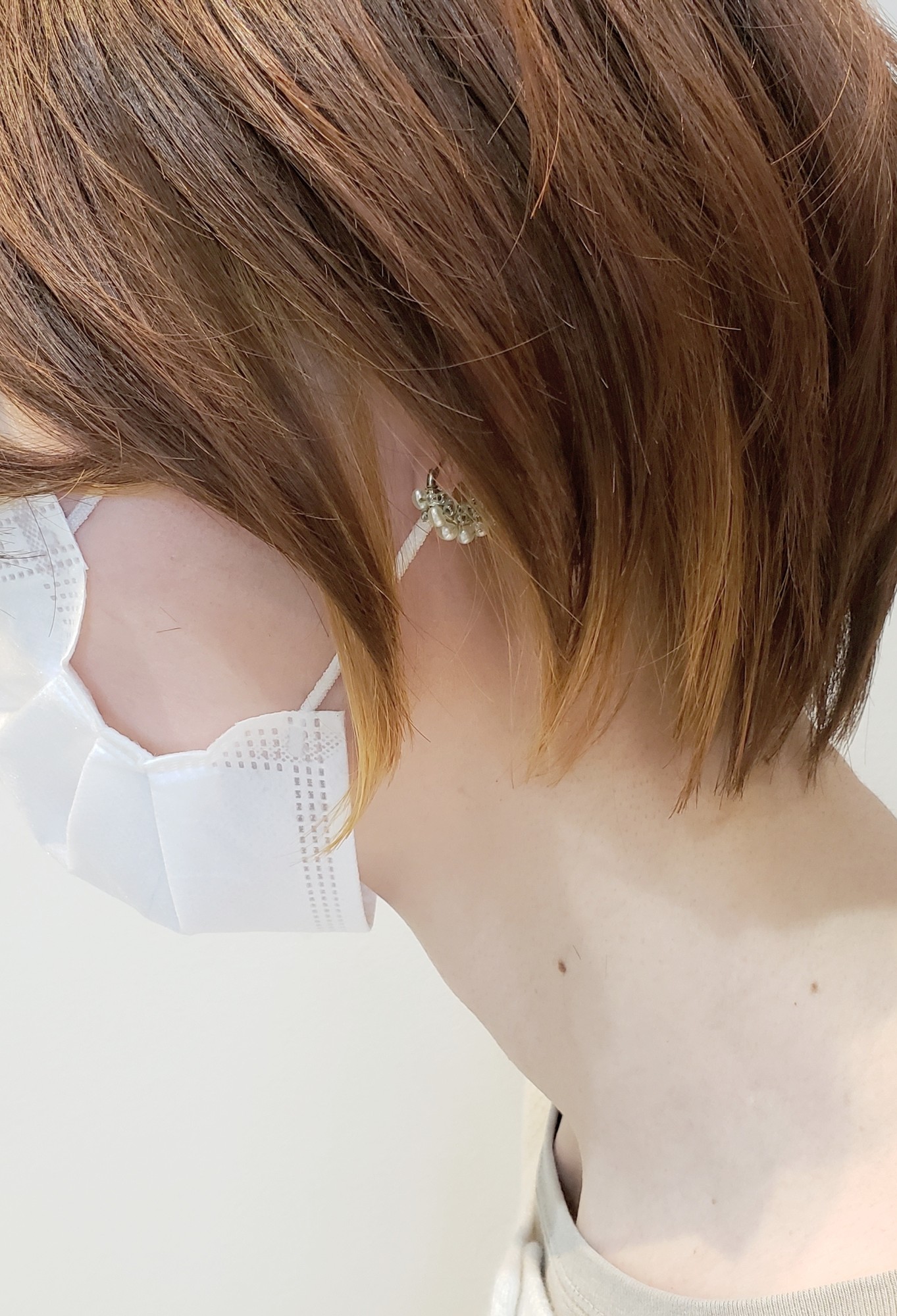 - インナーカラーがオシャレな耳かけショート。骨格や髪質に合わせて、どこから見ても綺麗なシルエットに。後ろからのシルエットは自分では見えない分、1番こだわってさせていただきます!