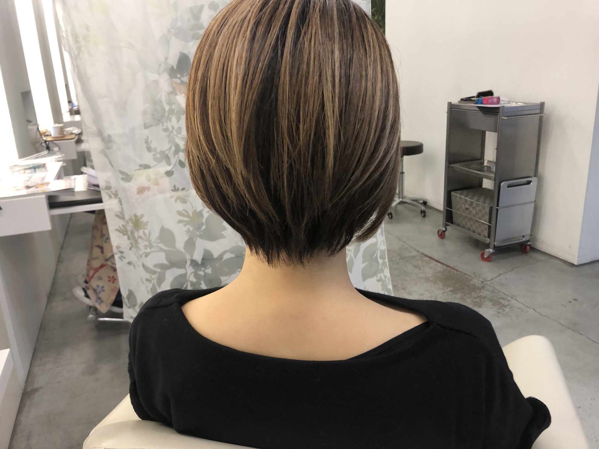 ハイライトとベースカラーの陰影がとっても雰囲気を出してくれます。 - カット、ハイライトオンカラーコース