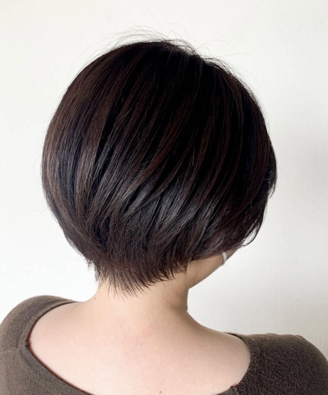 - 襟足はスッキリとトップの丸みは残してカット