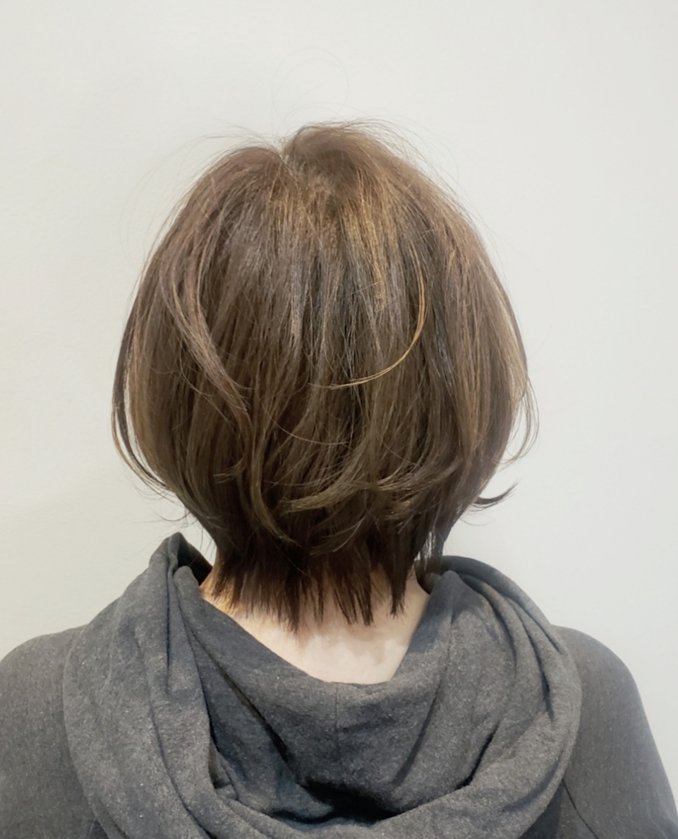 - タイトなくびれと、バックシルエットの美しさで、目を引く大人可愛いレイヤーショートに。