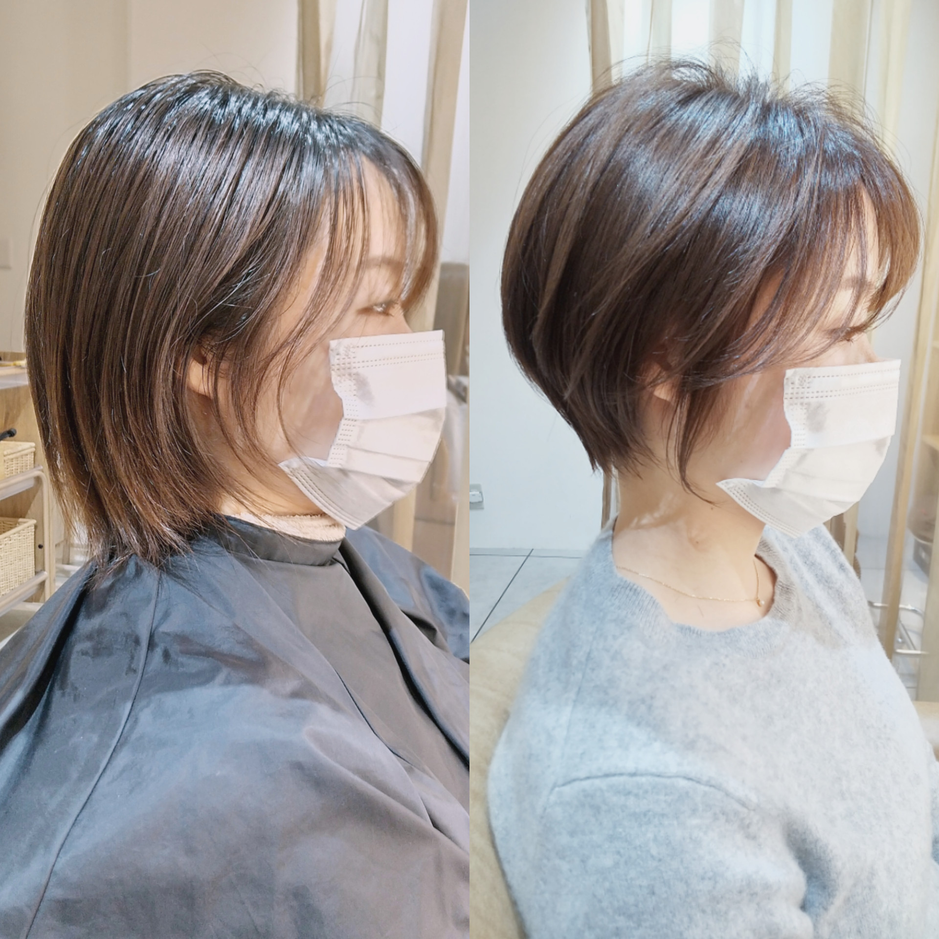 丸みのあるやわらかいシルエットで大人可愛くオシャレに!横顔美人効果ありです^^耳にかけてもやぼったくならないように質感調節し、動きのある肌馴染みよくカットしています。