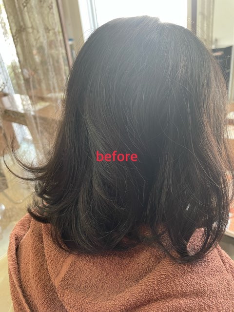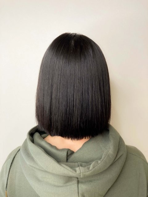 髪の毛に優しいお薬とトリートメント成分を入れ込みながらする施術でダメージを感じさせないストレートヘアに☆