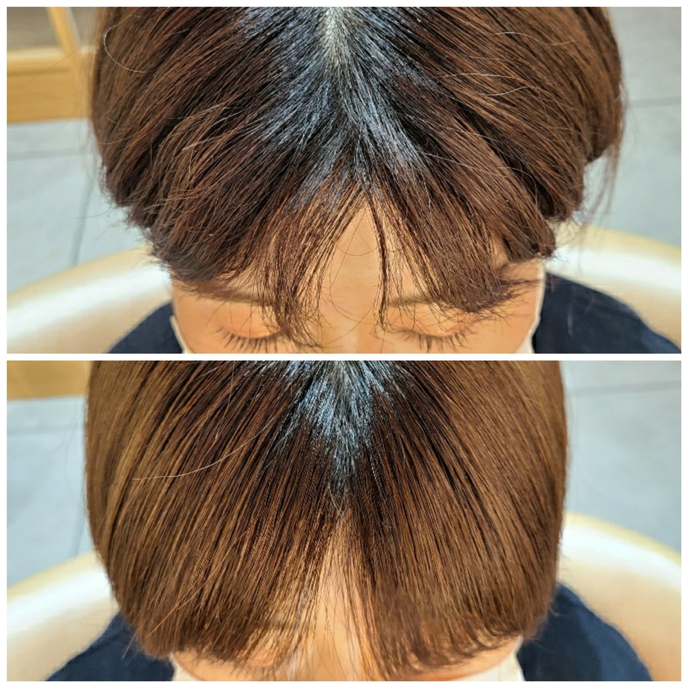 通常の縮毛矯正より1液の放置タイムが長いための30分ほど時間がかかります。