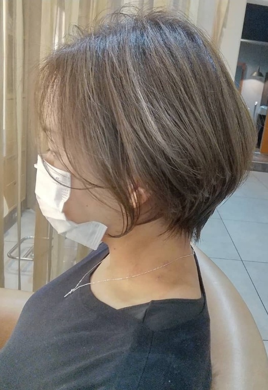 ナチュラルなマッシュショートシルエットでハチ周りのふくらみを抑えて面長もカバーして、後頭部もふんわりオシャレに!横顔美人効果ありです^^耳にかけてもやぼったくならないように、立体的に頭の形がきれいに見えるように質感調節し、お家でもスタイリングが簡単な再現性の高い、肌馴染みのよいカットをご提供します♪