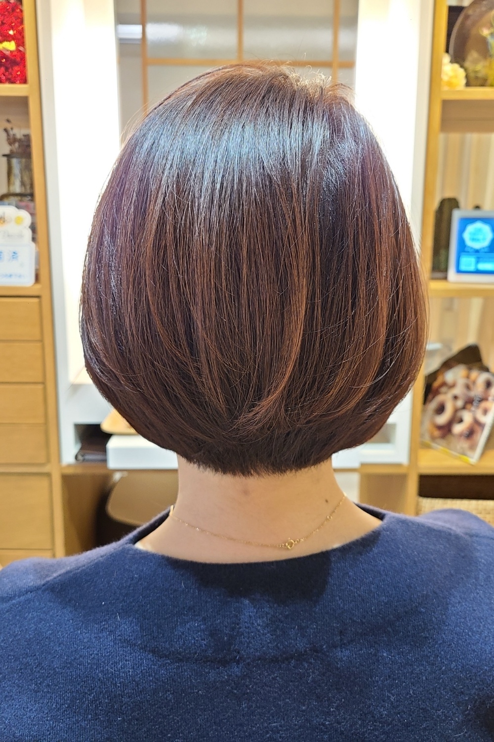 トレンドでは、カジュアルな丸みのある軽いショートボブが多いですが、白髪や髪質の変化がある中で、難しいところもあります。