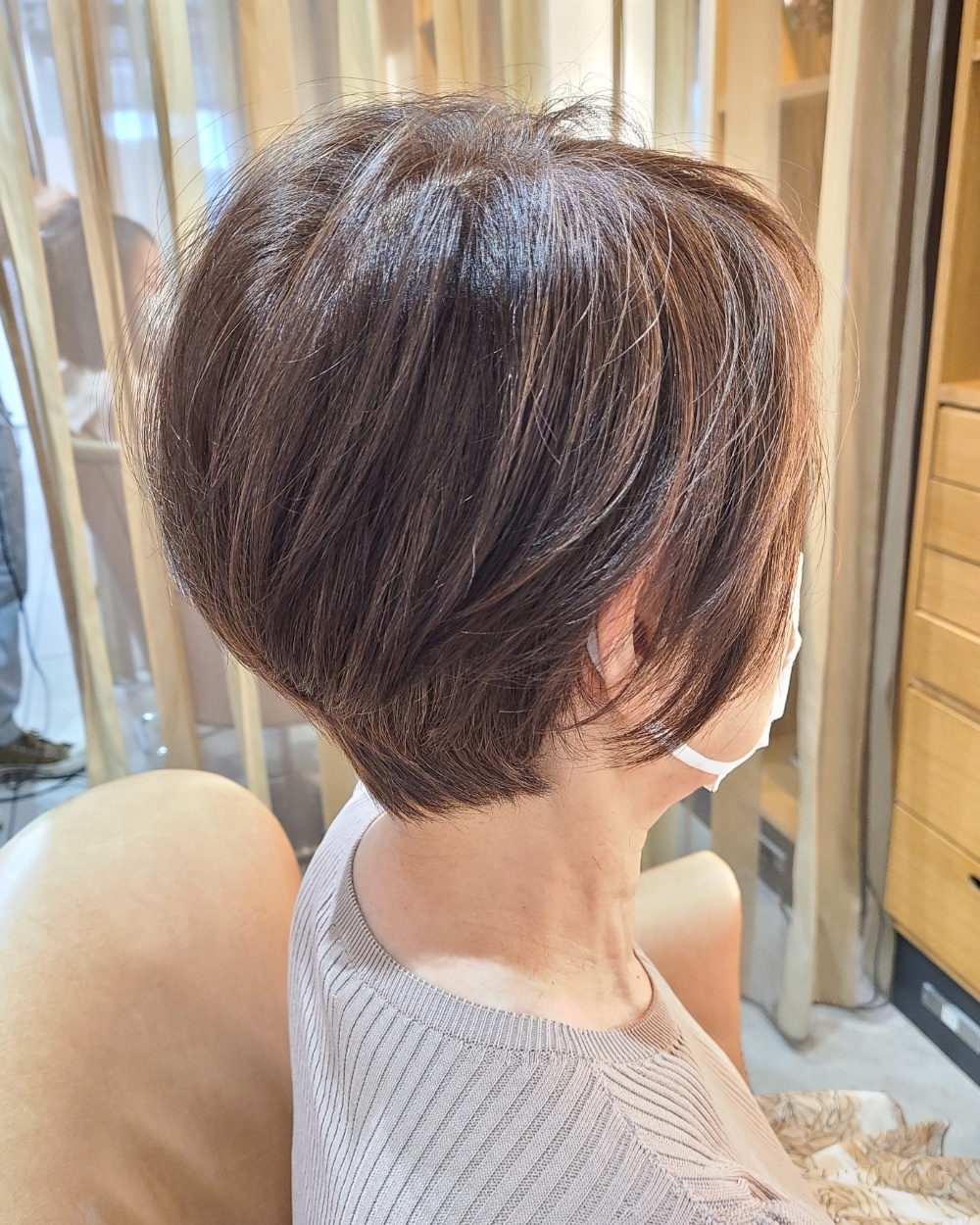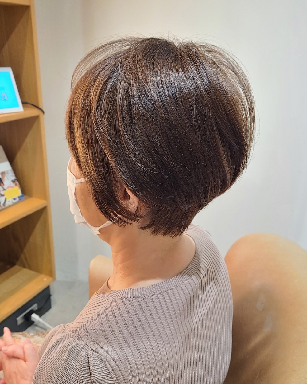 - 白髪率50%でも、白髪染めと、感じさせない透明感のある若見えカラー【グレーカラー2.0】