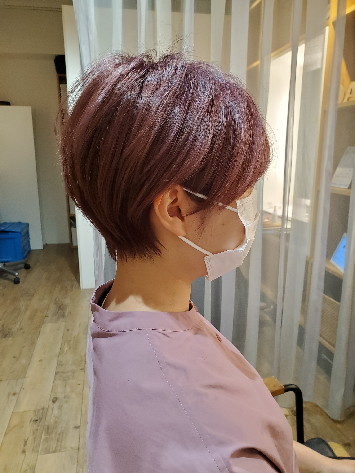 - 耳掛けひし形ショート&ピンクカラー【Guest's Hair 21】