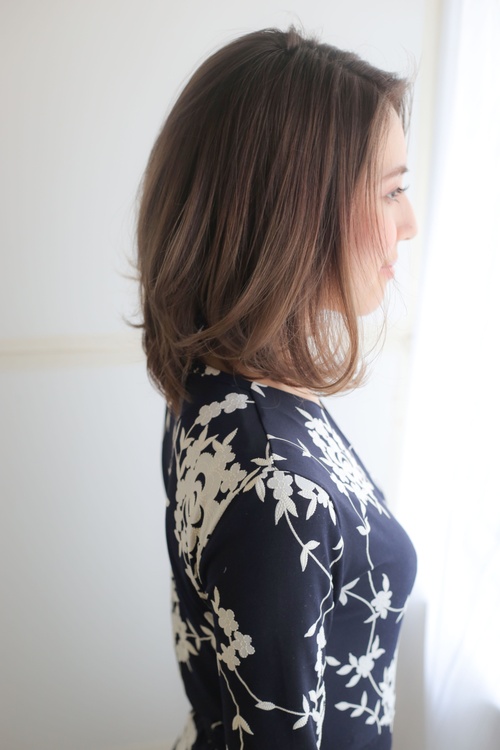 - 顔まわりを包み込むカットとカールで小顔のボブです!!表面を後ろに流すことで大人上品スタイルになります。スタイリングの苦手な方はデジタルパーマでやりやすくなりますよ!!カラーはアッシュブラウンで軽やかに仕上げます。