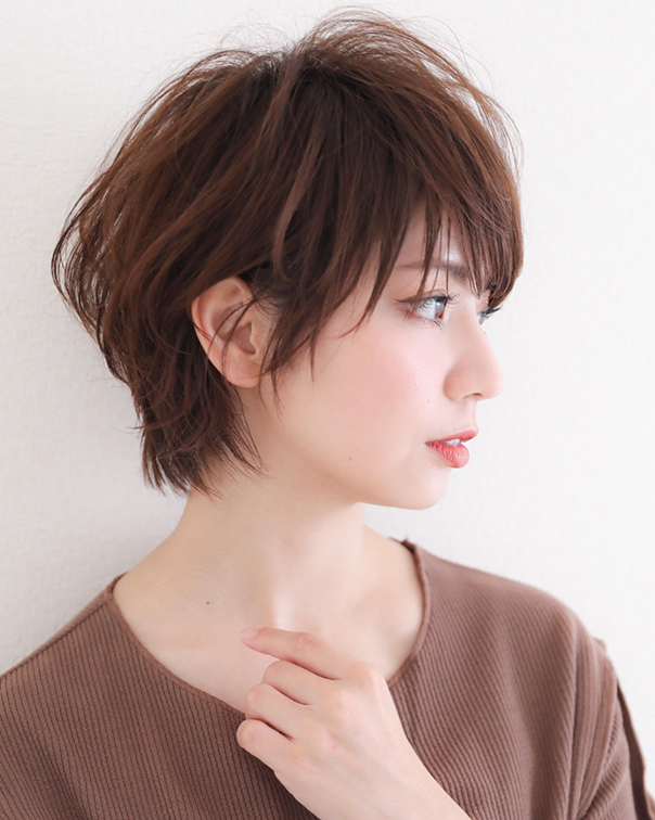 - 360度どこから見ても美シルエット!!小顔効果抜群のショートスタイル☆カラーはベージュ系カラーで柔らかく透明感あるツヤ髪に!!