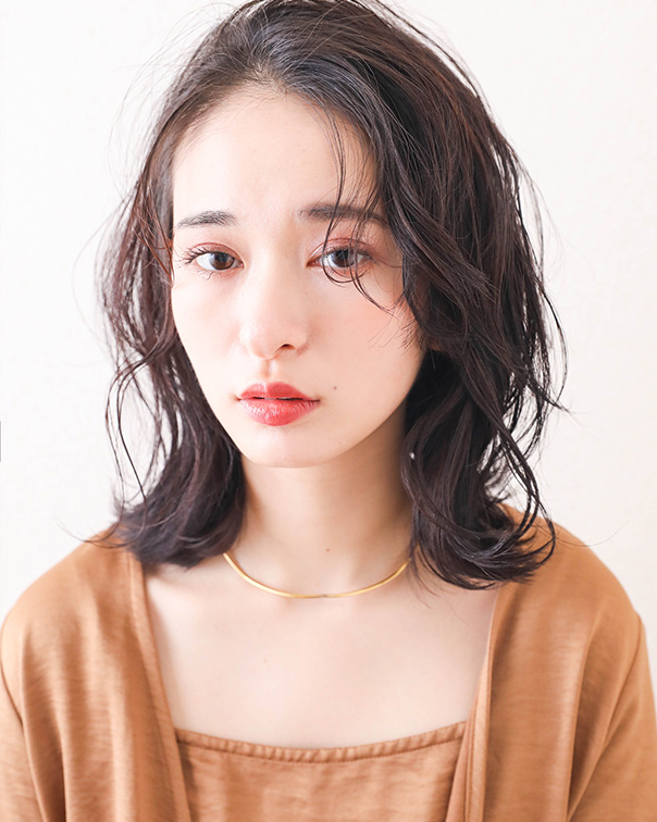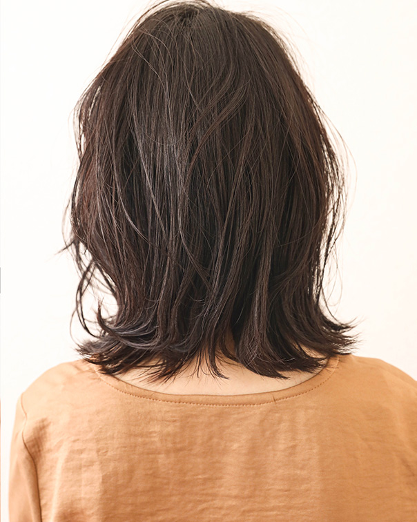- 外ハネをベースにニュアンスでウェーブ感をコテで表現したスタイルです。