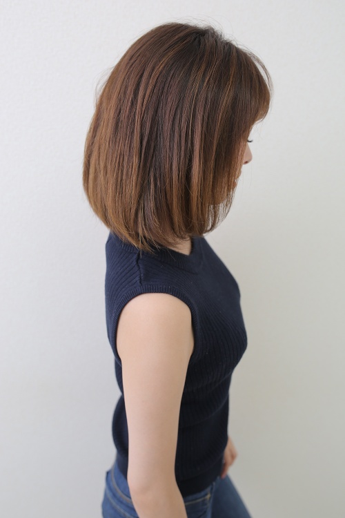 - 前下がりのナチュラルボブ!顔まわりに長さを残し小顔効果抜群!!くせ毛でお悩みの方はストレートパーマがオススメです!!扱いやすく朝のスタイリングが楽になりますよ。